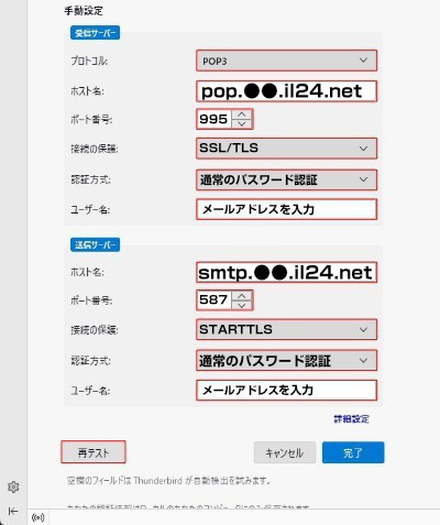smtp.●●.il24.net(●●はメールアドレス***@●●.il24.netの●●部分になります) |