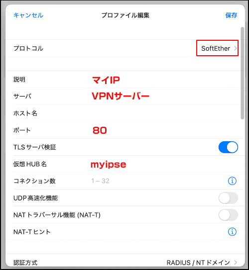 iOSで「マイIPソフトイーサ版」のPacketiX VPN接続を行う場合は下記をご参照ください。