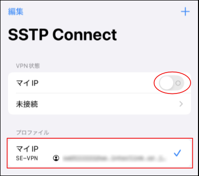 6.追加したプロファイルをタップして、接続を開始します。