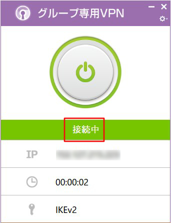 4.接続に成功すると、以下の画面になり、タスクトレイのアイコンが緑色に変わります。