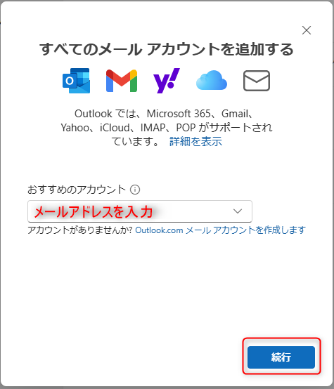 3.追加するメールアドレスを入力し、「続行」をクリックします。