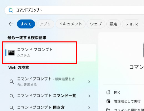 1.「キーボードで Windows キーを押す」→「コマンドプロンプト」と入力してからコマンドプロンプトを起動します。