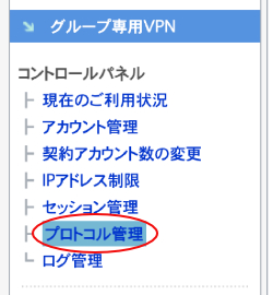 グループ専用VPNでのプロトコル管理方法は下記をご参照ください。