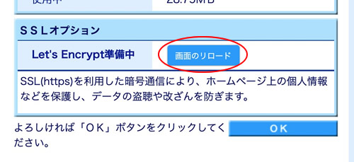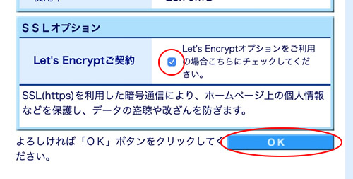 4.「Let's Encryptご契約」にチェックを入れ、「OK」ボタンをクリックします。