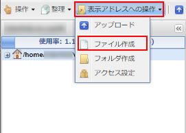4.ファイルマネージャーの画面左上から「表示アドレスへの操作」> [ファイル作成]をクリックします。