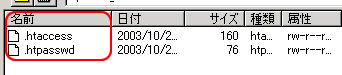 転送したファイルの「htpasswd.txt」を「.htpasswd」に変更する。(ドットがはいります)